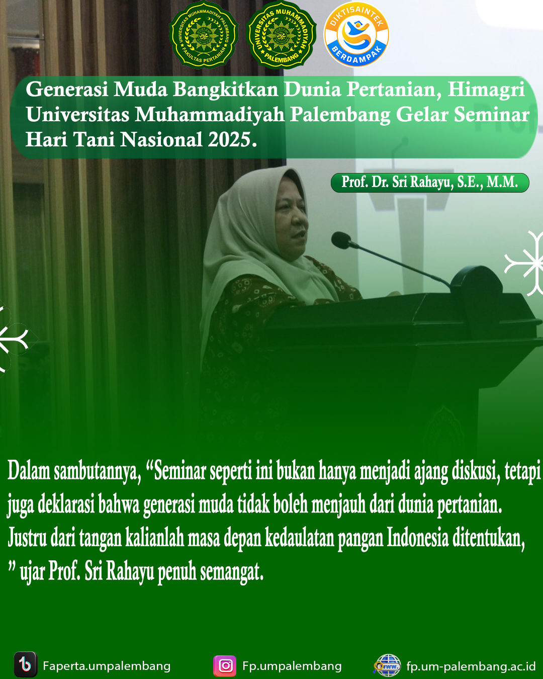 Generasi Muda Bangkitkan Dunia Pertanian, Himagri Fakultas Pertanian Universitas Muhammadiyah Palembang Gelar Seminar Hari Tani Nasional 2025Generasi Muda Bangkitkan Dunia Pertanian, Himagri Fakultas Pertanian Universitas Muhammadiyah Palembang Gelar Seminar Hari Tani Nasional 2025