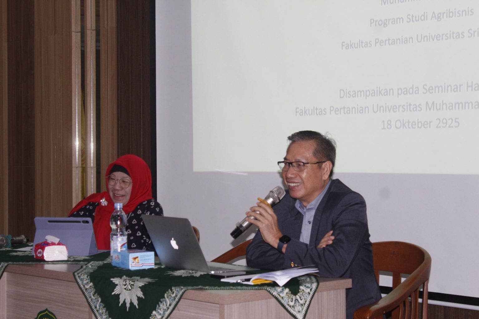 Seminar menghadirkan dua pakar pertanian Sumatera Selatan, Dr. Ir. M. Yamin, M.P. dan Prof. Dr. Ir. Supli Effendi Rahim, M.Sc., dengan Dr. Yetty Hastiana, M.Si. sebagai moderator.